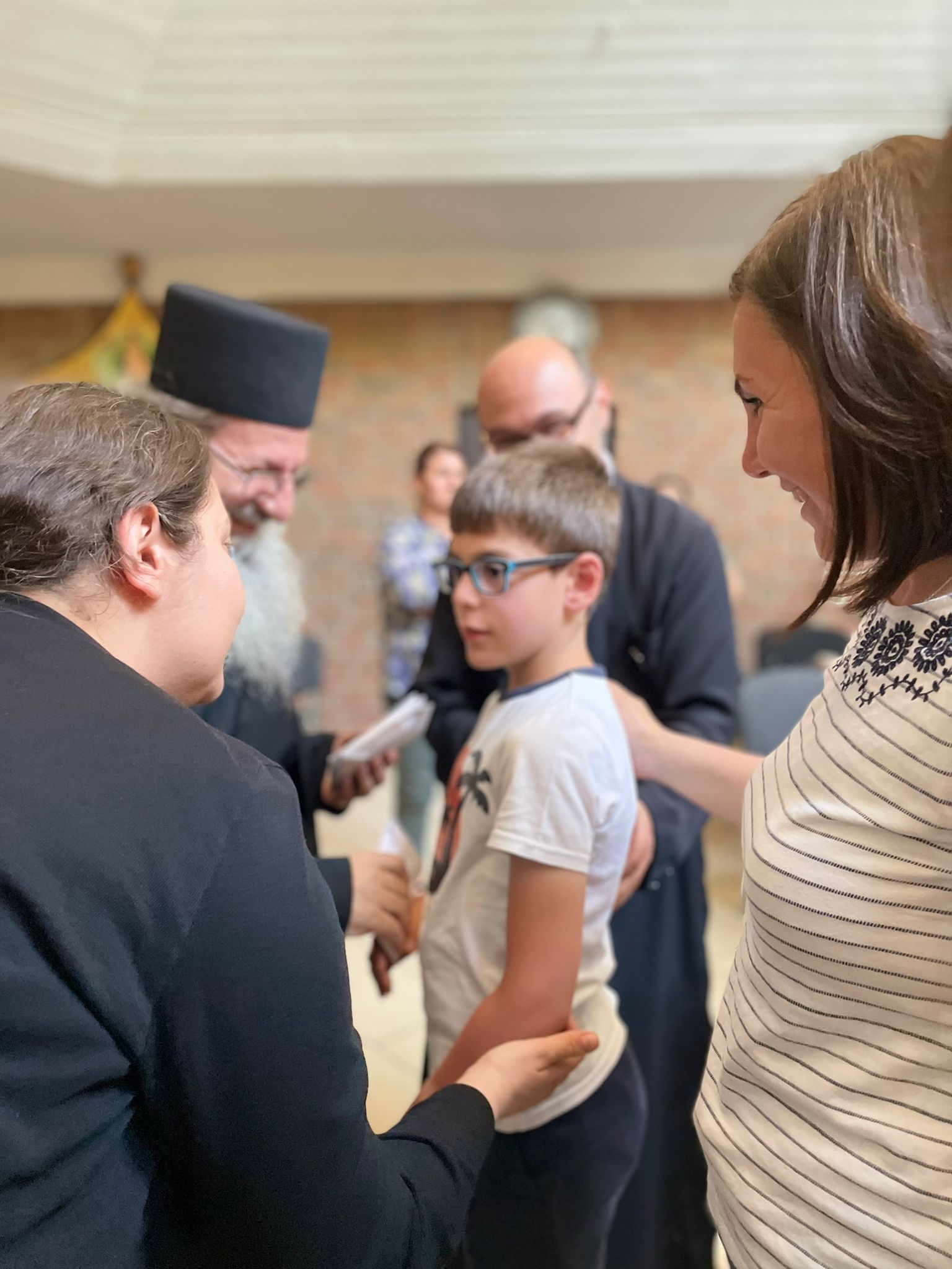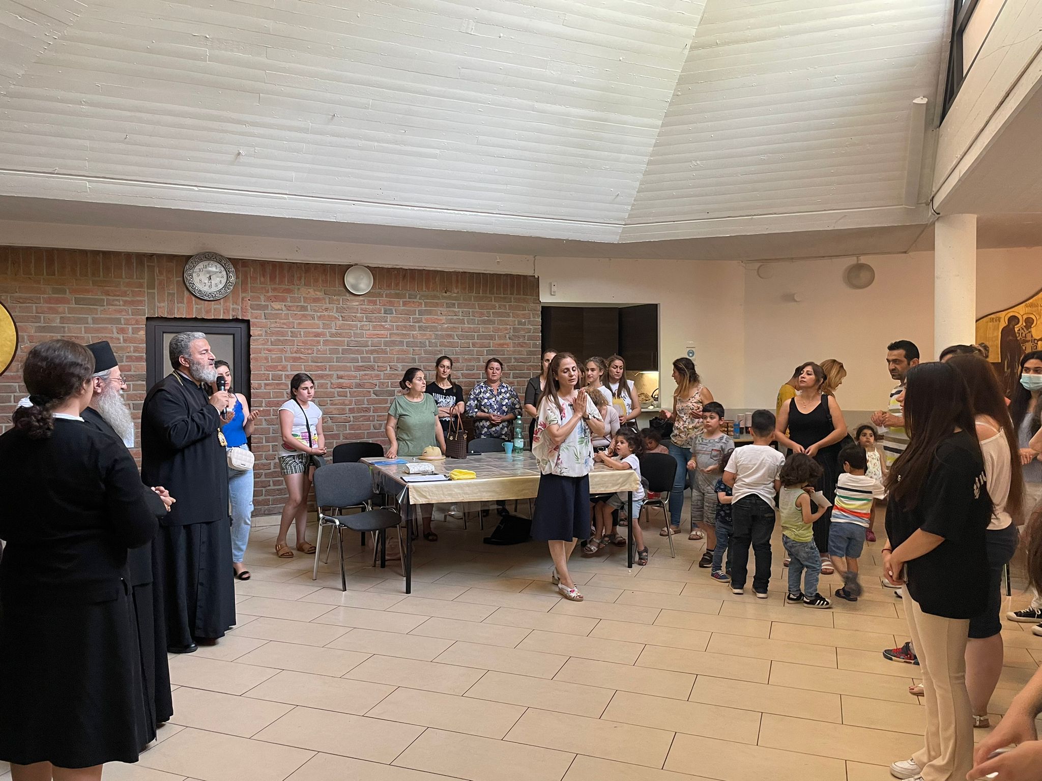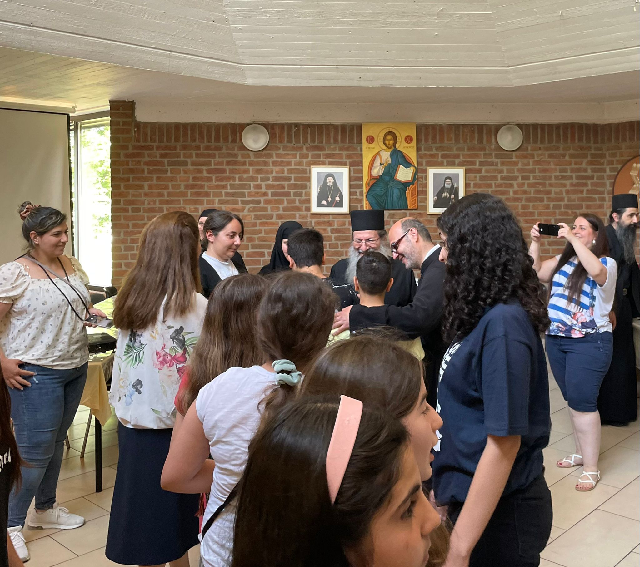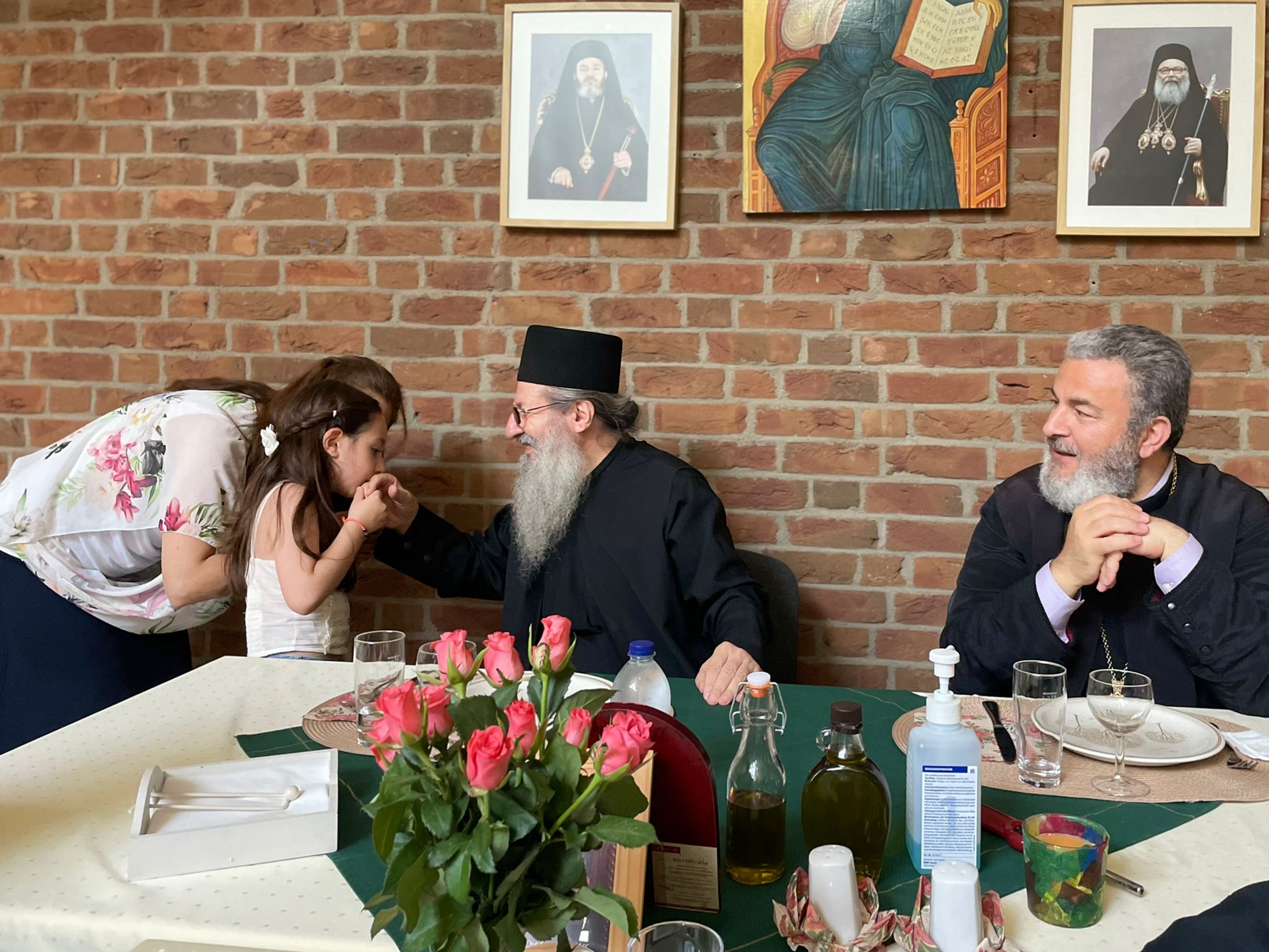 Im Rahmen seines Aufenthalts in Köln bei S.E. Metropolit Isaak Barakat hat Abt Elissaios in Begleitung von Mönchspriester Seraphim (vom Kloster „Simonos Petras“) und Äbtissin Ipandia sowie Nonne Nikodei aus Frankreich (Kloster „Solan“) die Kindergruppe besucht. Zu Beginn hat die Kindergruppe den Gästen einige Chorlieder vorgetragen. Danach erzählte Abt Elissaios vom Leben im Kloster und beantwortete Fragen der Kinder. Im Anschluss daran erhielten die Gäste selbstgemachte Geschenke von der Kindergruppe und auch die Kinder wurden vom Abt beschenkt.