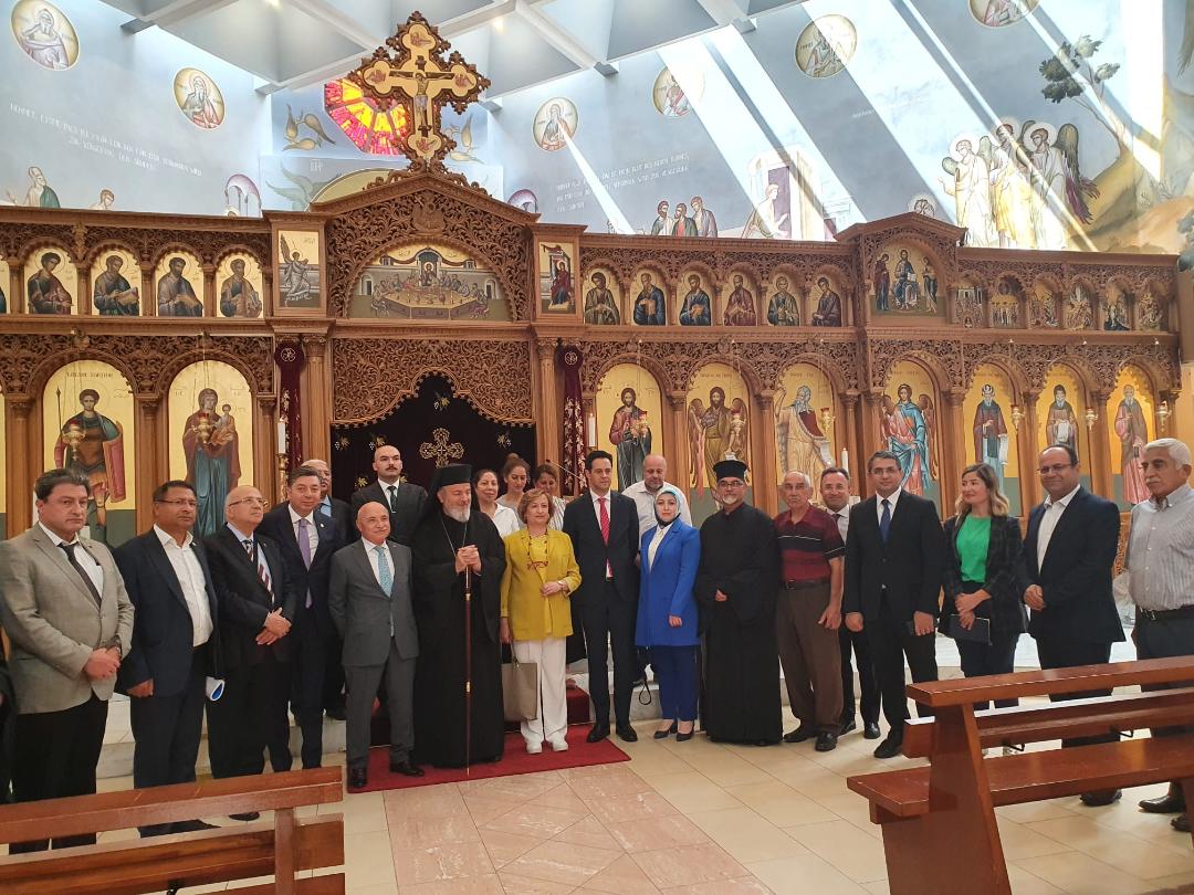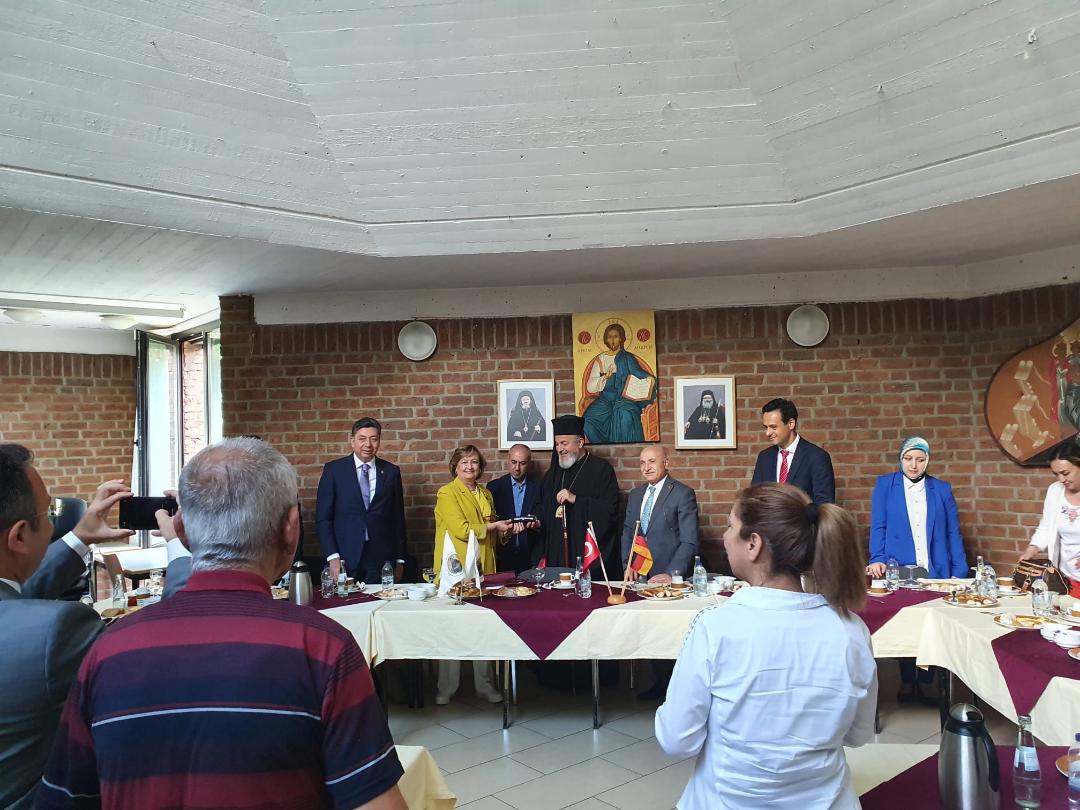Empfangen wurden die Gäste von S.E. Metropolit Isaak Barakat und mehreren Gemeindevetretern. Zu den geladenen Gästen gehörten darüber hinaus Vetreter der St. Georgios Gemeinde Köln, Vertreter der syrisch-orthodoxen Gemeinde Mor Simon sowie interessierte Gemeindemitglieder.