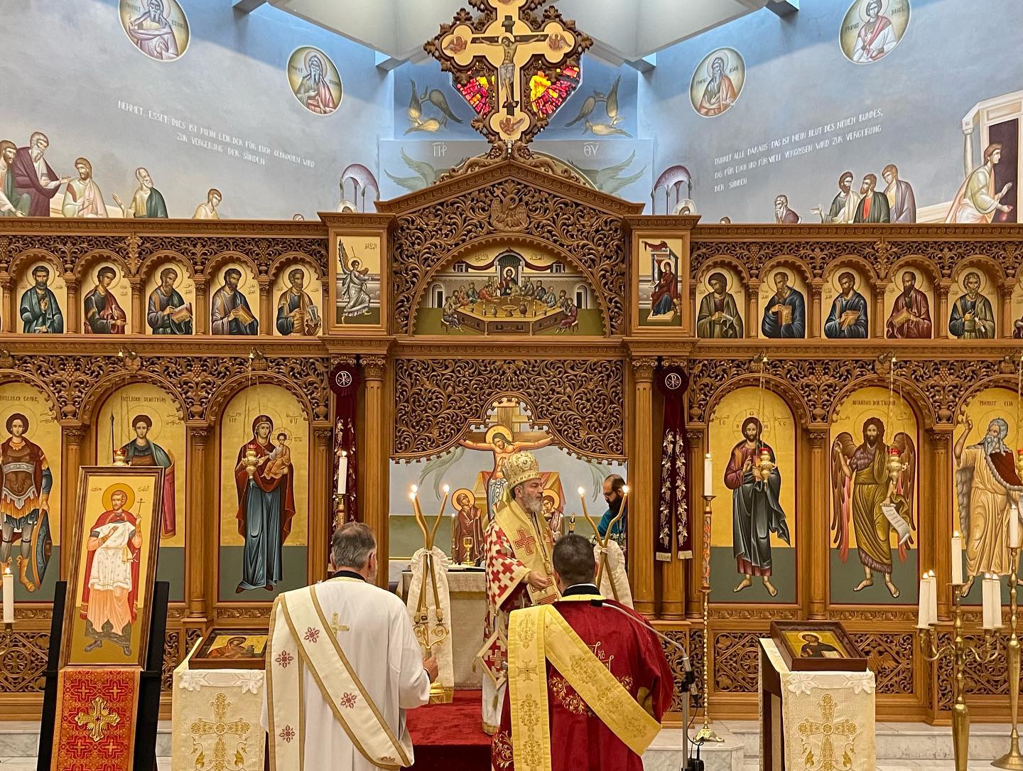 Durch Handauflegung (Cheirotonia) und Gebet weihte S.E. Erzbischof Dr. Isaak Barakat Diakon Raphael Blasberg, während der Göttlichen Liturgie am Samstag, den 29. Oktober 2022 in unserer St. Dimitrios Gemeinde, zum Priester.