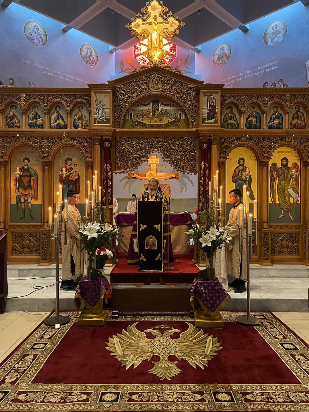 Am ‚Großen Donnerstag‘ fand unter der Leitung S.E. Isaak Barakat das Leidensgebet statt. Dabei werden im Verlauf des Gottedienstes zwölf ausgewählte Abschnitte aus den Evangelien gelesen, die über das Leiden und den Tod Jesu Christi berichten. Diese “Zwölf Evangelien” sind auch die Besonderheit des Gottesdienstes. Nach dem fünften Evangelium verkündet der Priester die Kreuzigung, indem er die Verse „Heute hängt am Kreuz …“ intoniert und eine Prozession mit dem Kreuz vom Altar zur Mitte des Kirchenschiffs führt, wobei ihn der Chor mit einem entsprechenden Gesang begleitet.