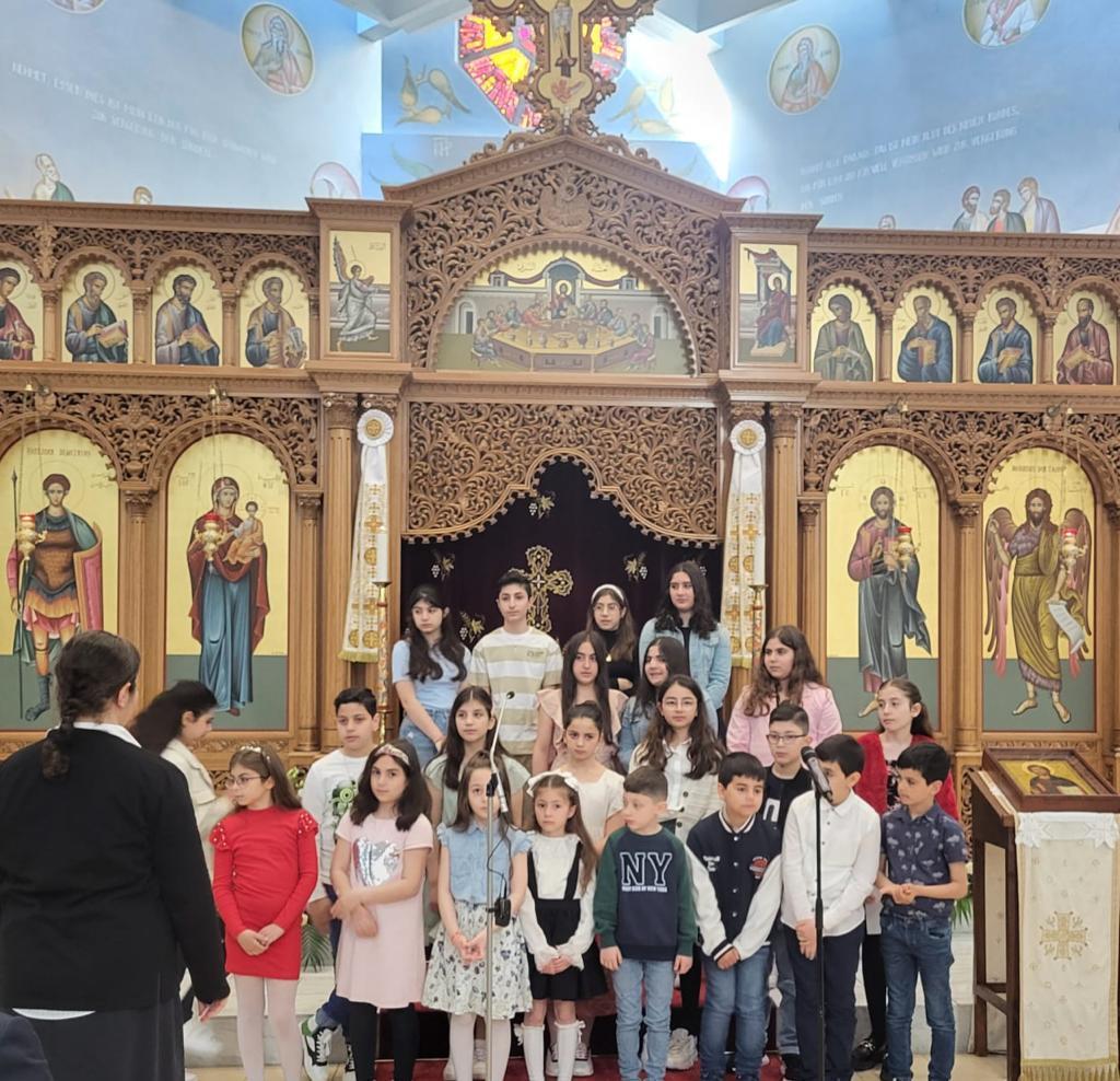 Die Kinder aus dem Arabischkurs hatten mehrere Lieder zur Auferstehungszeit sowie dem Muttertag vorbereitet und trugen diese im Anschluss an den Gottedienst in der Kirche vor.