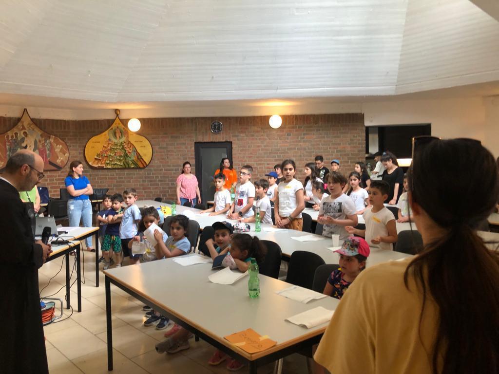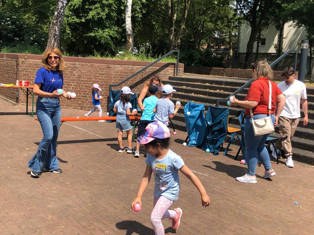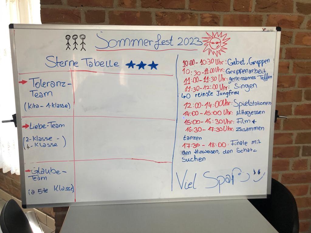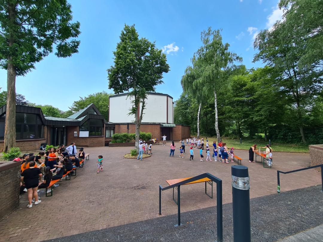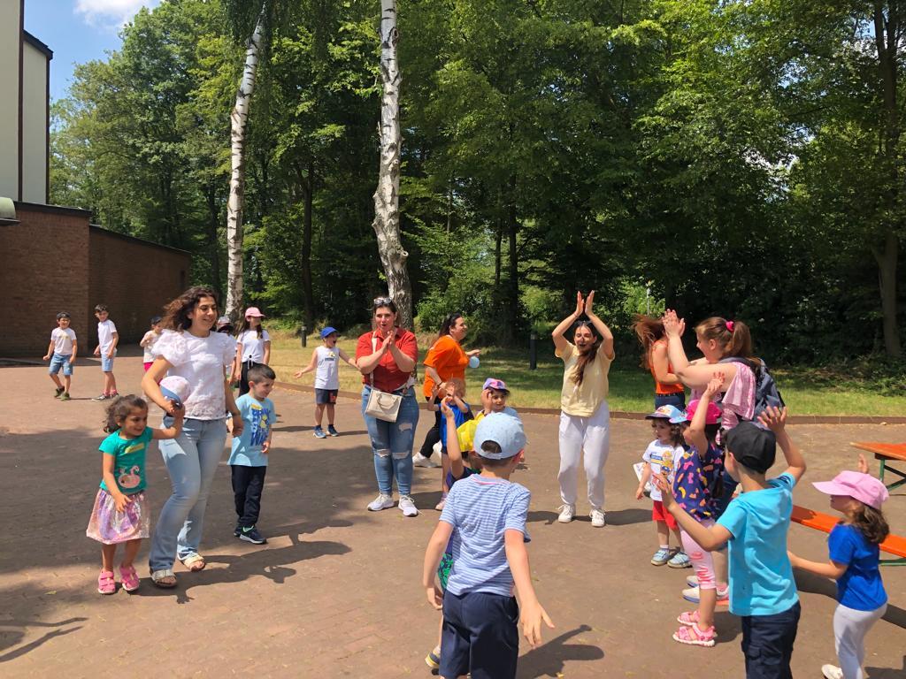 Die Kindergruppe hat vor Pause aufgrund der Ferien ein Sommerfest veranstaltet, bei dem viele Kinder der Gemeinde gekommen sind.