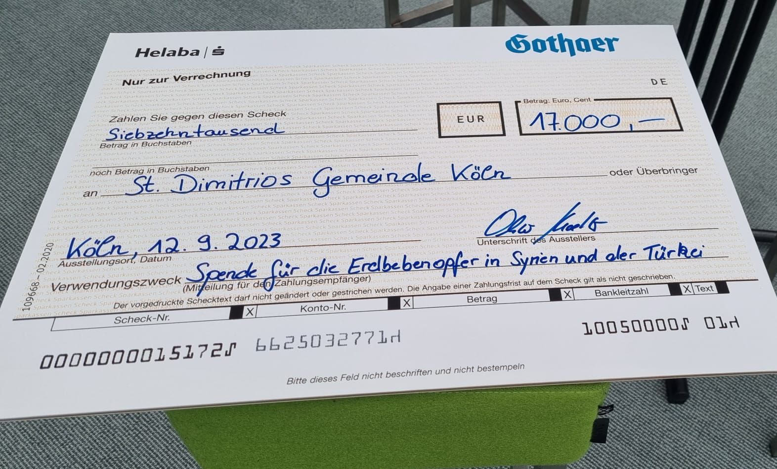 Auf diesem Wege bedankt sich auch die St. Dimitrios Gemeinde Köln bei der Gothaer Versicherung für die Anerkennung der Leistung und dem ausgesprochenem Vertrauen!
