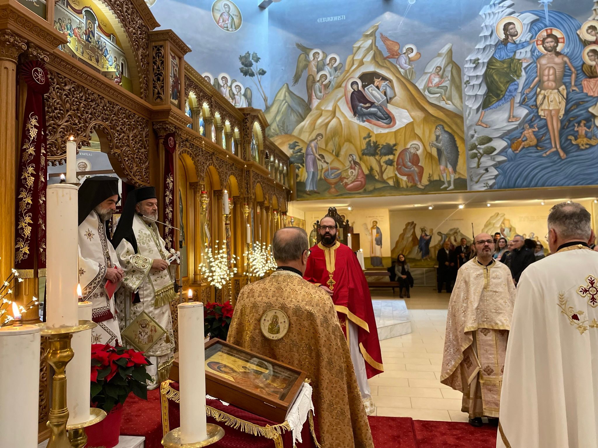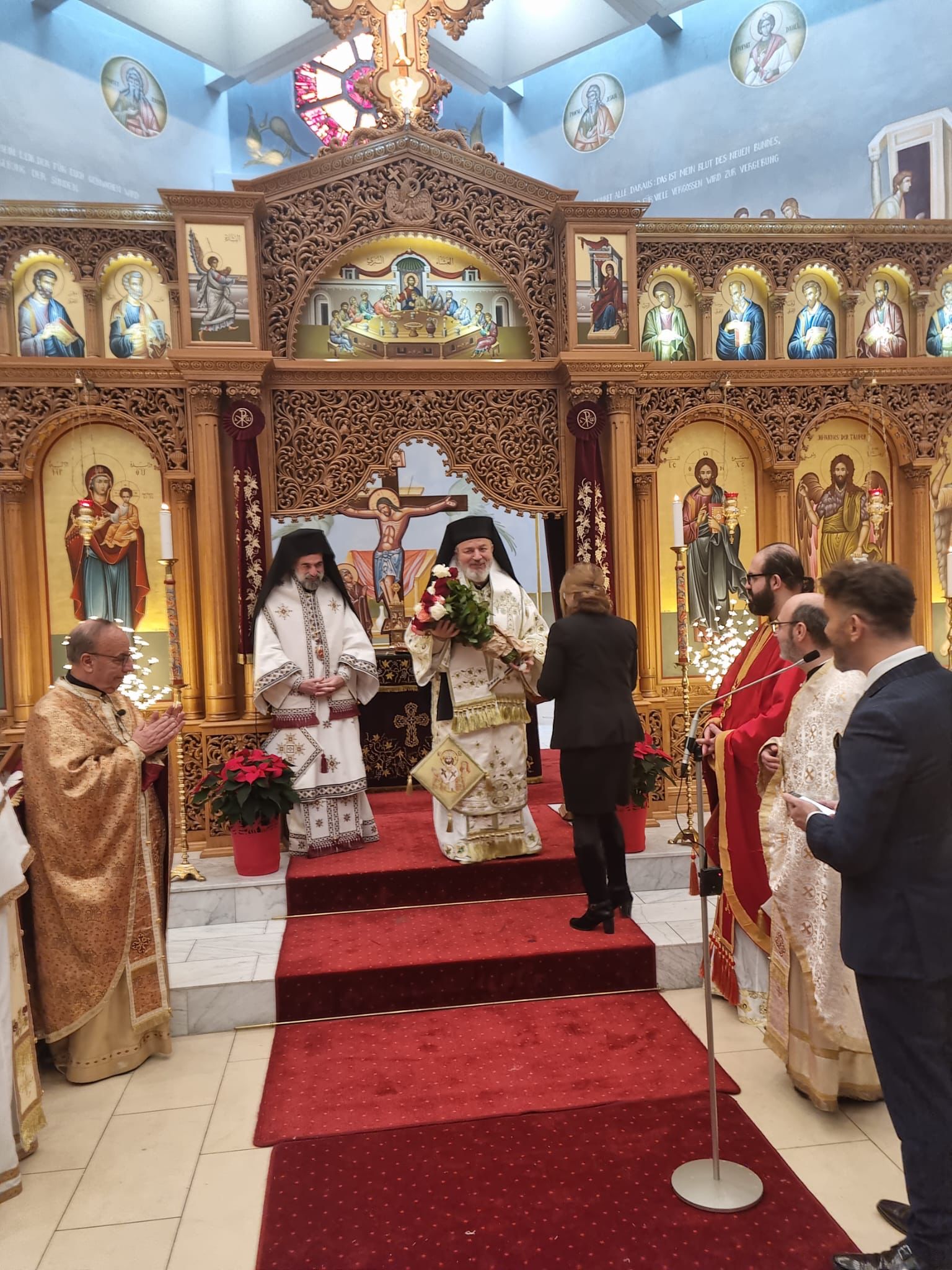 Anlässlich des 10-jährigen Jubiläums Seiner Eminenz Isaak Barakat als Metropolit der Antiochenisch-Orthodoxen Metropolie von Deutschland und Mitteleuropa, fand am Sonntag, den 26. November 2023, unter der Leitung S.E. Isaak Barakat und in Konzelebration mit Weihbischof Bartholomaios von Arianz von der griechisch-orthodoxen Metropolie von Deutschland (Ökumenisches Patriarchat von Konstantinopel) sowie Erzpriester Elias Esber, Gemeindepriester Abdallah Aljamal, Priester Raphael Blasberg und Archimandrit Seraphim die heilige Liturgie statt.