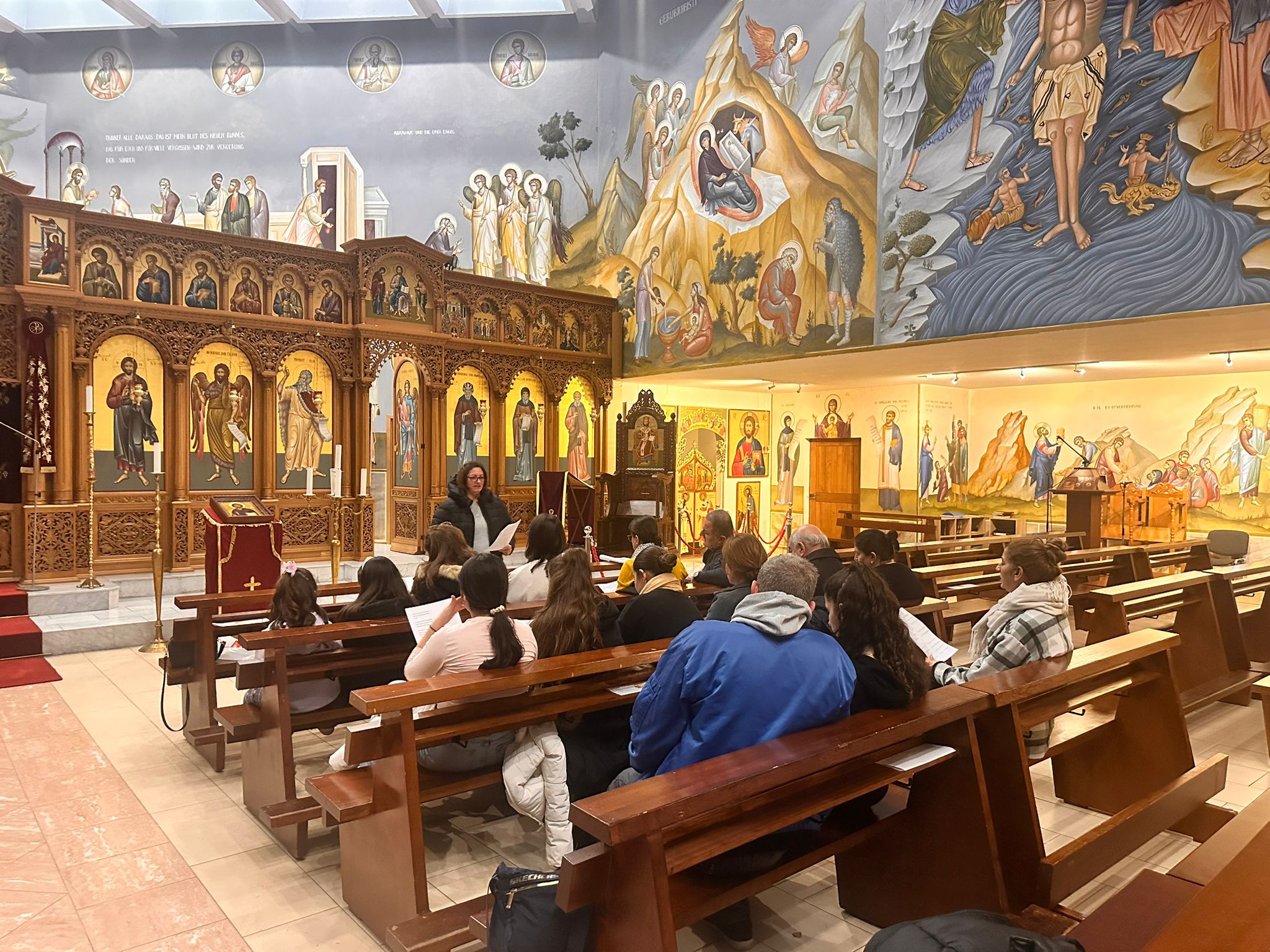 Beim Jugendtreff erläuterte Vater Abdallah den Jugendlichen die Bedeutung und die Inhalte der Göttlichen Liturgie. In einer lebendigen Diskussion konnten die jungen Erwachsenen zwischen 16 und 30 Jahren ihre Fragen stellen und tiefer in die spirituelle Dimension der Liturgie eintauchen.