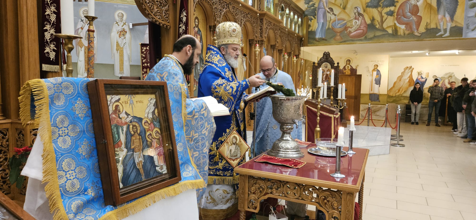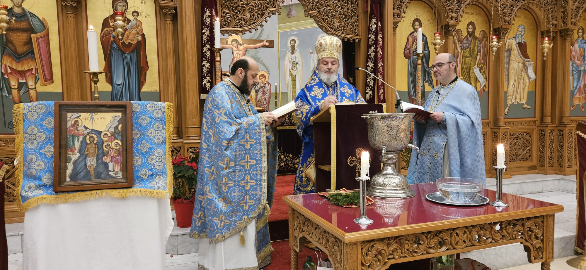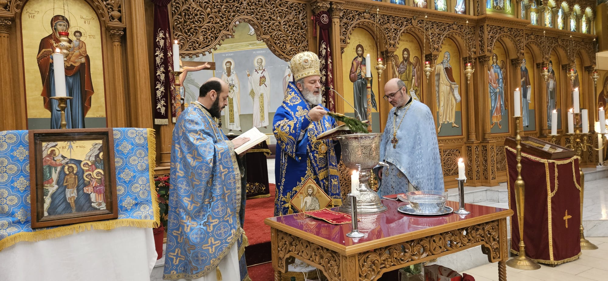 Die Liturgie zum Fest der Theophanie – auch Epiphanie genannt – wurde am Montagabend, den 6. Januar 2025 unter der Leitung S.E. Isaak Barakat sowie in Konzelebration mit den Gemeindepriestern Abdallah Aljamal und Dimyan Yakupoglu durchgeführt.
