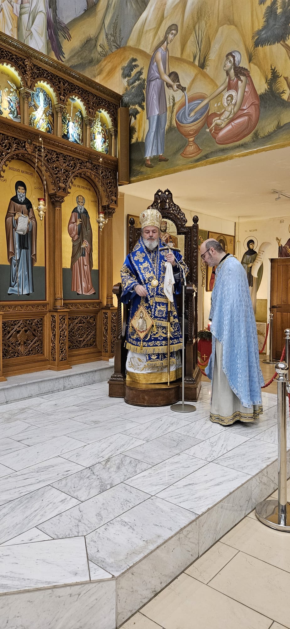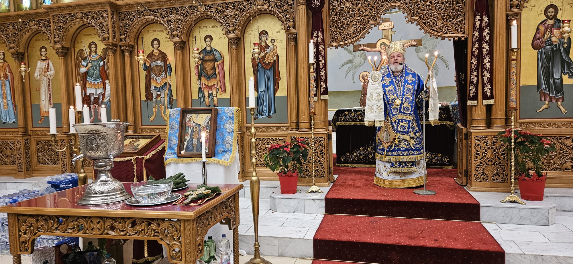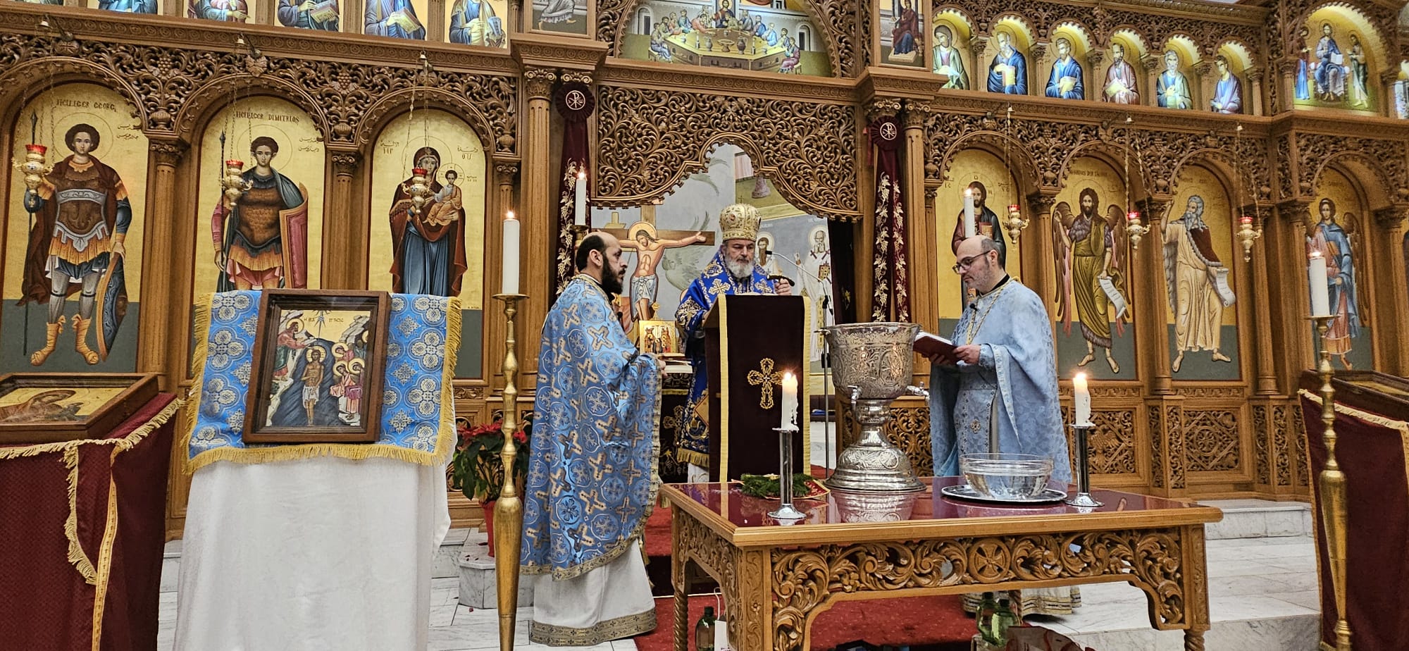 Die Liturgie zum Fest der Theophanie – auch Epiphanie genannt – wurde am Montagabend, den 6. Januar 2025 unter der Leitung S.E. Isaak Barakat sowie in Konzelebration mit den Gemeindepriestern Abdallah Aljamal und Dimyan Yakupoglu durchgeführt.