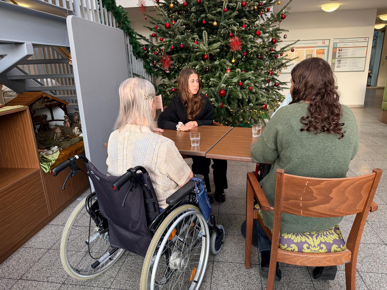 Darüber hinaus brachten die Jugendlichen selbstgemachte Plätzchen mit, sangen weihnachtliche Lieder und überreichten den Bewohnern kleine Weihnachtsgeschenke, die große Freude bereiteten.