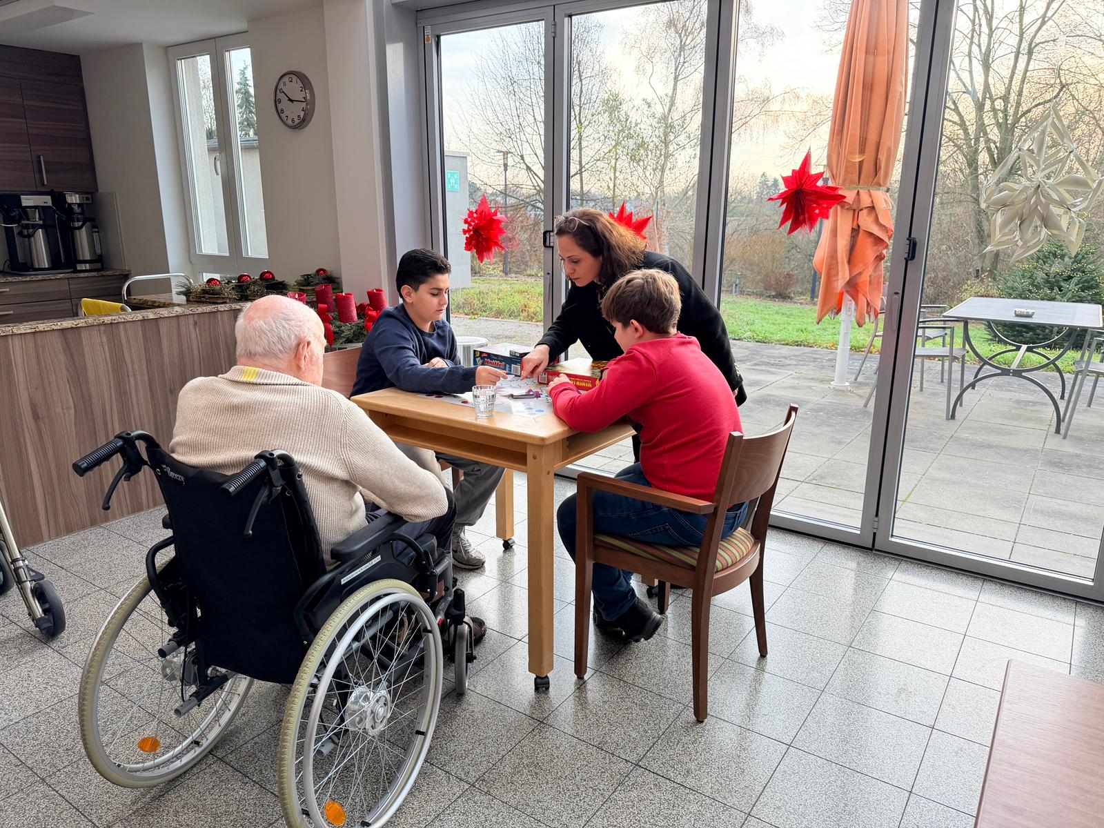 Gemeinsam mit den Bewohnerinnen und Bewohnern verbrachten die Jugendlichen eine sehr schöne und bereichernde Zeit. Es wurde gespielt, gelacht und miteinander Gemeinschaft erlebt – sei es bei Gesellschafts- und Kartenspielen oder in persönlichen Gesprächen.